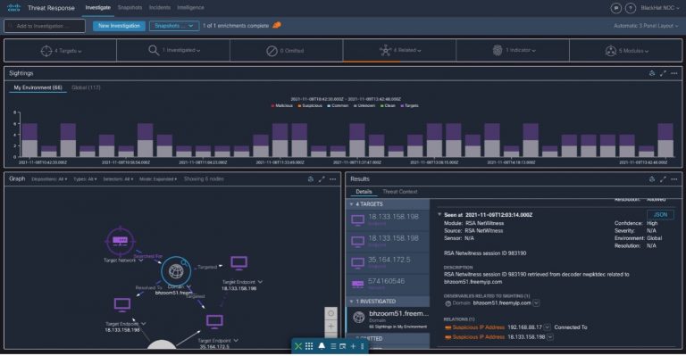 Ian Redden, who manages the SecureX threat response 3rd party integrations ecosystem, built a custom integration with RSA NetWitness for the Black Hat NOC.