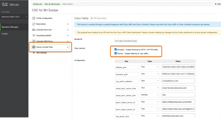 Next, we need to deploy Clarity for iOS from the Endpoint console under Management -> Deploy clarity for iOS. Here you can select the Group in which those connectors will reside, choose your Meraki organization and the network. Once you click Update, the Clarity content filter setting will automatically be pushed to the Meraki profile. Now just ensure the latest Meraki profile is pushed to all your device and that’s it!