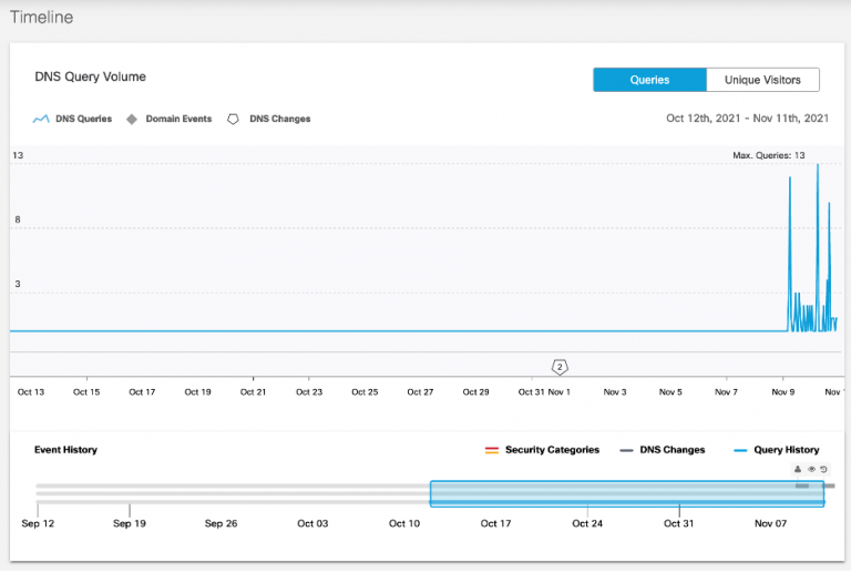 In Umbrella investigate, we could also quickly see the global queries for the domain.