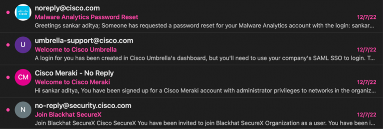Once the workflow has completed successfully, the user will receive four emails to create a SecureX Sign-On account and accept the invitations to the various products. These workflows really improved our responsiveness to account provisioning requests and makes it much easier to collaborate with other NOC partners.