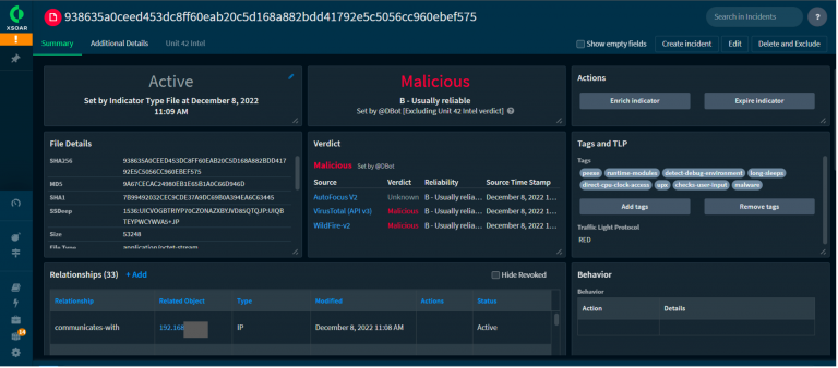 The attack was blocked at the perimeter and the analysts were able to track and enrich the incident in XSOAR.