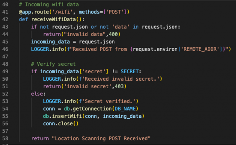 Both can be queried directly into Python Pandas dataframes which is what will give us the optimal performance we are looking for. We have a dedicated Docker container (Meraki-Receiver) that will validate the incoming data stream from the Meraki dashboard and insert the values into the database.