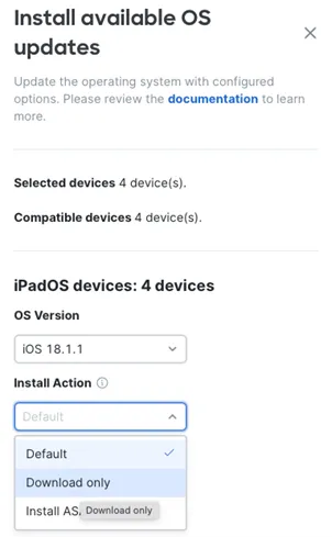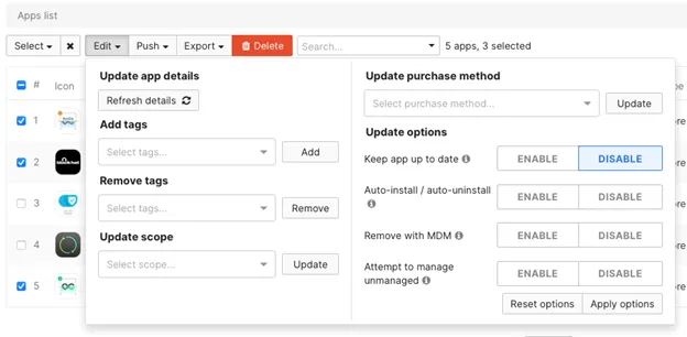In Meraki Systems Manager, we configure the app like this: