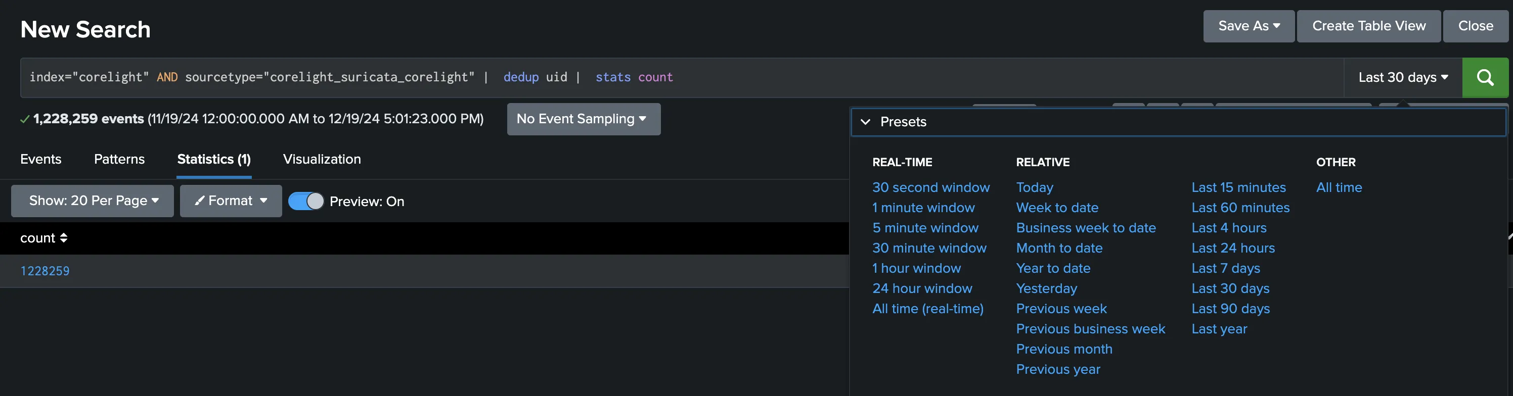 The ingested data for each integrated platform was deposited into their respective indexes. That made data searches for our threat hunters cleaner. Searching for data is where Splunk shines! You begin by simply navigating to and typing your search query. You do need to know the Splunk Query Language (SQL) to build your queries but that is just a quick tutorial away. Apps > Search and Reporting