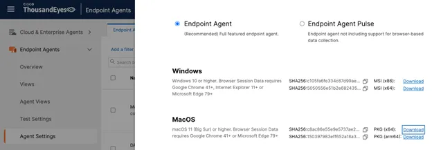 This can be downloaded from .Endpoint Agents > Agent Settings > Add new Endpoint Agent