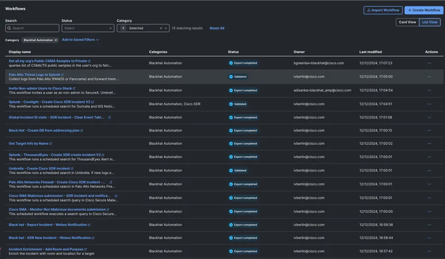 The following automation workflows were built specifically for Black Hat use cases: