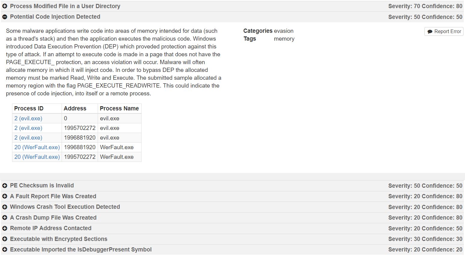Some interesting behavior was seen in a series of samples injecting code into memory.
