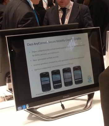 6,000 miles away from Cisco headquarters, the Cisco AnyConnect Secure Mobility Client for Android was showcased at Samsung’s SAFE™ (Samsung for Enterprise) booth at Mobile World Congress 2013. The SAFE program offers enterprise customers the peace of mind to use Samsung devices for both work and play. As noted in this year’s annual security report, Android malware grew 2577% over 2012. Under the SAFE program, Samsung has built an enterprise mobile ecosystem and partnered with key market leaders to deliver tested enterprise-ready solutions on their portfolio of smart devices. These devices earmarked with the SAFE logo have passed Samsung’s in-house reliability standards and therefore lowers the need for IT departments to test the security of each device and offer administrative convenience to IT professionals. Today, Samsung is working with key Mobile Device Management (MDM) and VPN partners to ensure corporate data protection on their suite of smart devices. With the Cisco AnyConnect Secure Mobility Solution and the SAFE program, Samsung’s products offer secure, market-leading remote access for mobile professionals. Additional information about SAFE is available here.