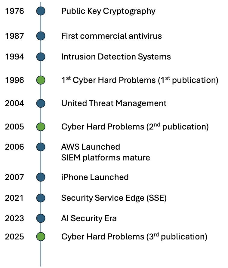 Two decades is a long time in the cybersecurity world. Twenty years ago, when the National Academies last published the Cyber Hard Problems report, social media was for college kids with .edu emails and the global pandemic had yet to drive business online. Cloud computing was nascent and was still without online storage and elastic compute. Most applications and data still lived behind enterprise edge firewalls. Endpoint security still meant antivirus agents. And remote work, when it was permitted, meant accessing the network through a Virtual Private Network (VPN).