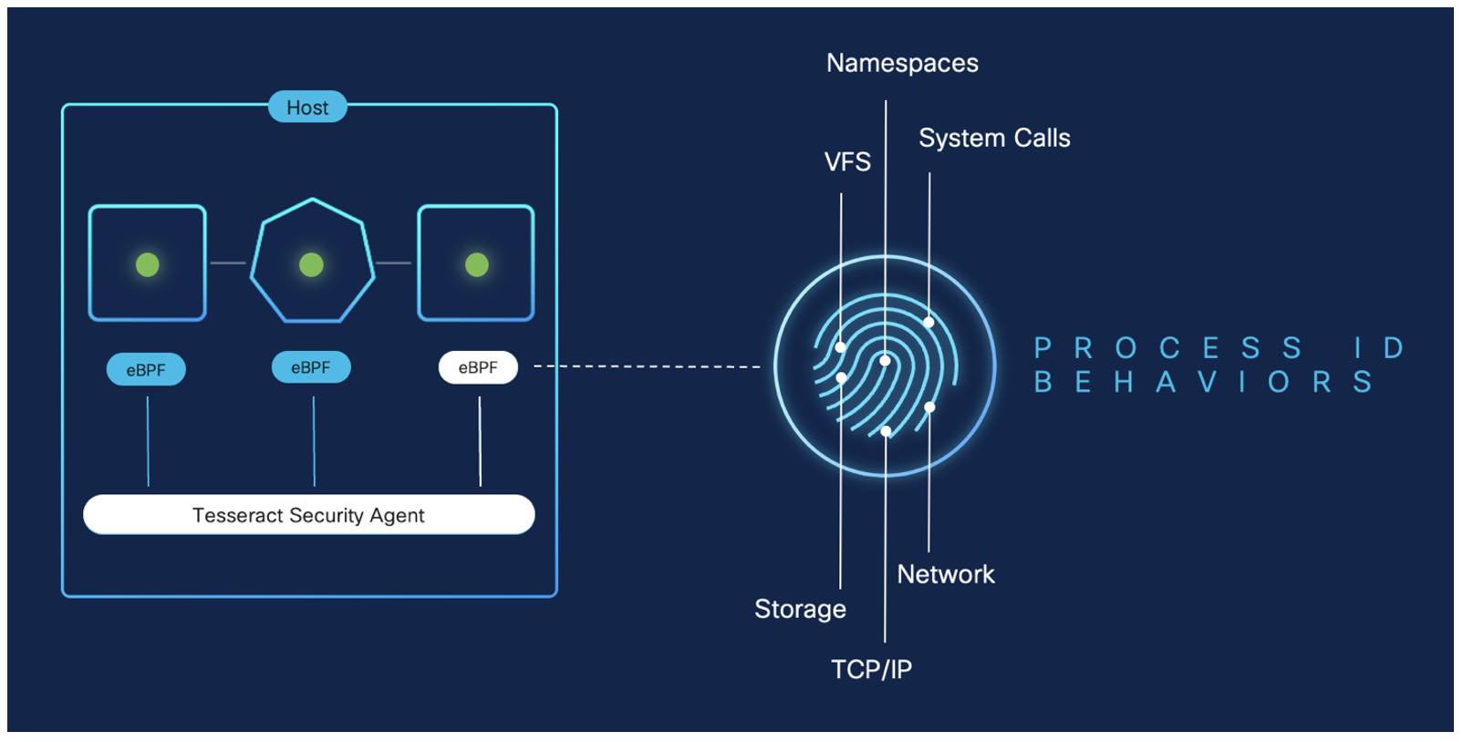 A core component of Cisco Hypershield is the Tesseract Security Agent, which runs on the workload. This could be a virtual machine running Linux or a Kubernetes environment. Both private and public clouds are supported; in fact, Hypershield can provide unified policy and management across the domains. The Tesseract Security Agent interacts with workload processes via the operating system’s kernel using extended Berkeley Packet Filter (eBPF). eBPF is an open-source, cloud-native capability and is becoming the de facto standard for high-performance, non-invasive visibility and security in hyperscalers. Any time a process reads a file or opens a network connection, the eBPF code placed in the kernel by the Tesseract Security Agent is executed. Hypershield uses this technology in new ways to bring together a larger system that provides visibility and control across workloads and networks.
