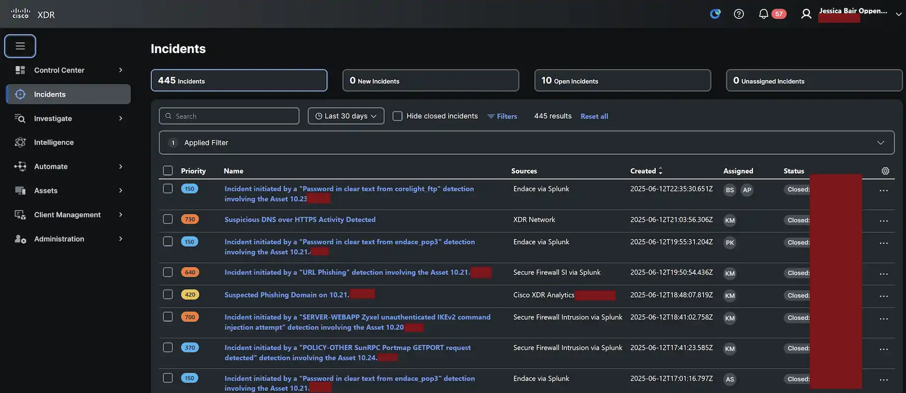 Incidents were investigated in XDR, with threat intelligence provided by Cisco Talos, and licenses donated by alphaMountain and Pulsedive, along with community sources.