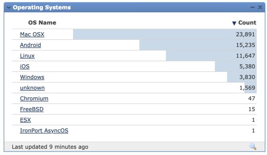 - The more than 58,000 hosts are of varying device types, with those running Mac OSX/iOS being the most prevalent.