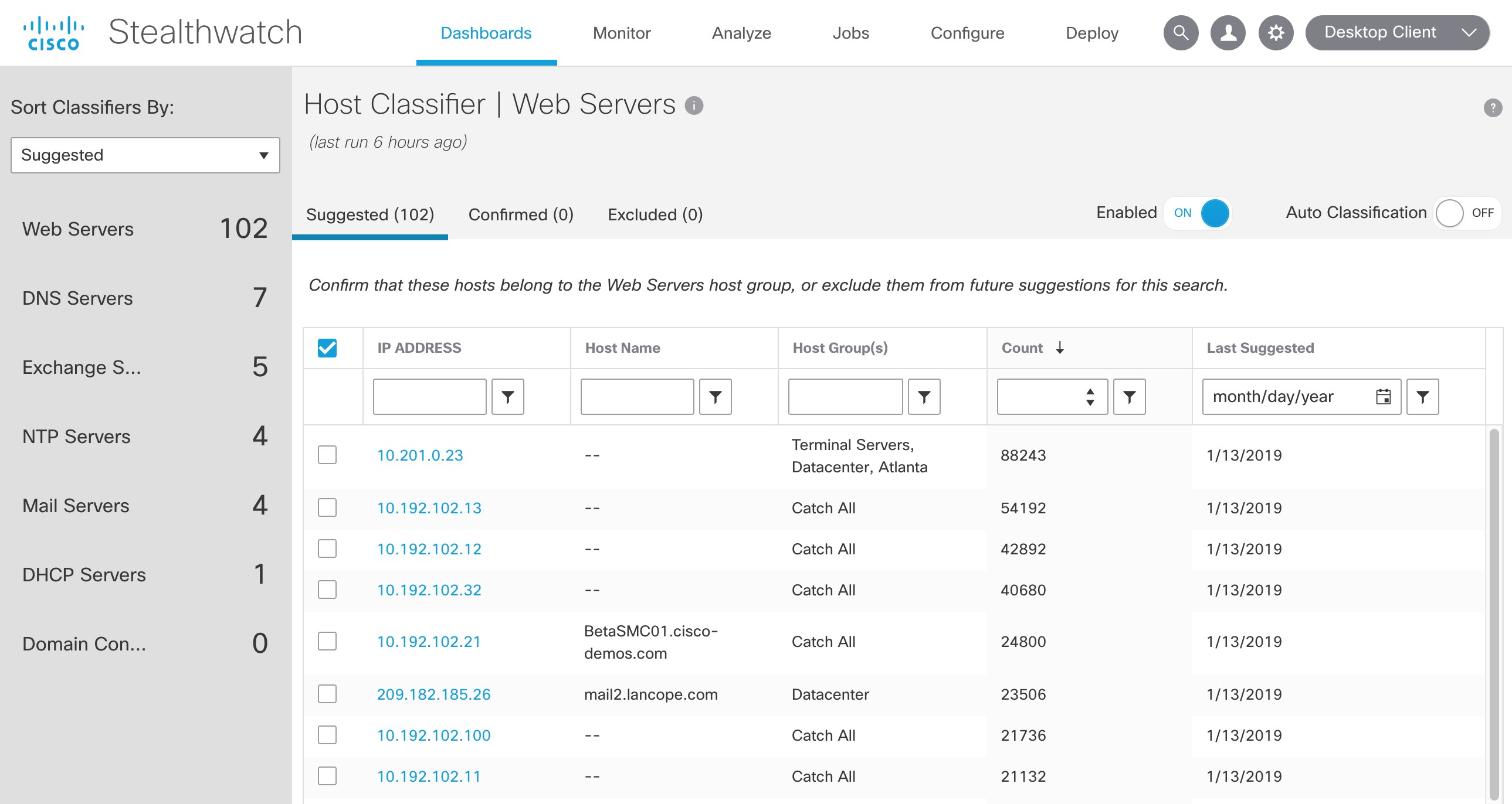 - Classify hosts into Host Groups to effectively monitor for anomalies and threats based on the business workflows