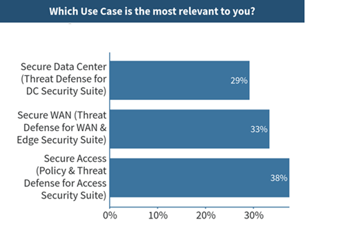 These poll results show an almost equal demand from customers across each part of the infrastructure, indicating recognition of the need to secure their data centers, branch environments and access infrastructure.