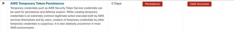 “AWS Temporary Token Persistence” alert which identifies temporary tokens created by other temporary credentials.