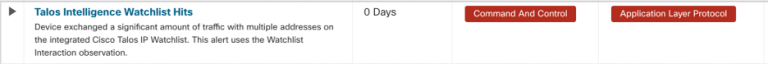 Additionally, if devices connect with a known bad domain or IP from Denonia, Secure Cloud Analytics will trigger a ““Talos Intelligence Watchlist Hits” alert which indicates a device on the network communicated with a known bad domain or IP from Cisco Talos. Domain or IP matching is not always guaranteed in cases like Denonia where DNS over HTTPS is used, therefore it’s important to look at malicious behavior in conjunction with known IOCs for complete visibility and detection capability.