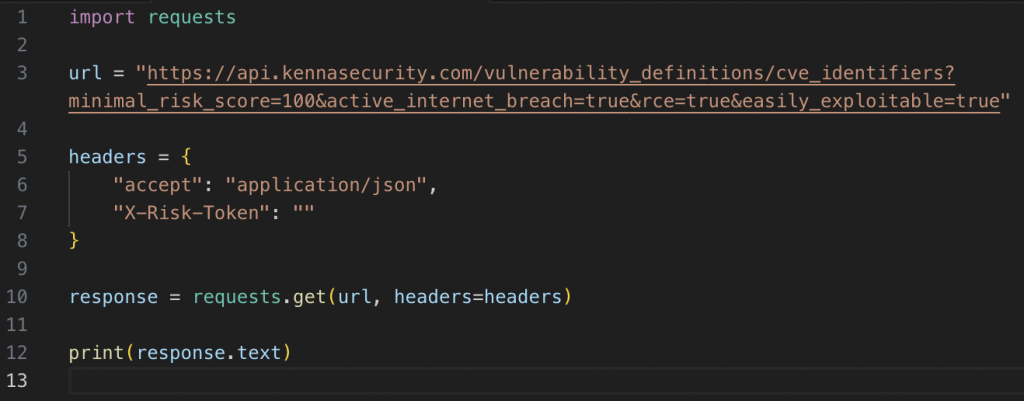 This API call allows you to set a risk score and choose from a handful of filters that can indicate that a vulnerability is a higher risk: