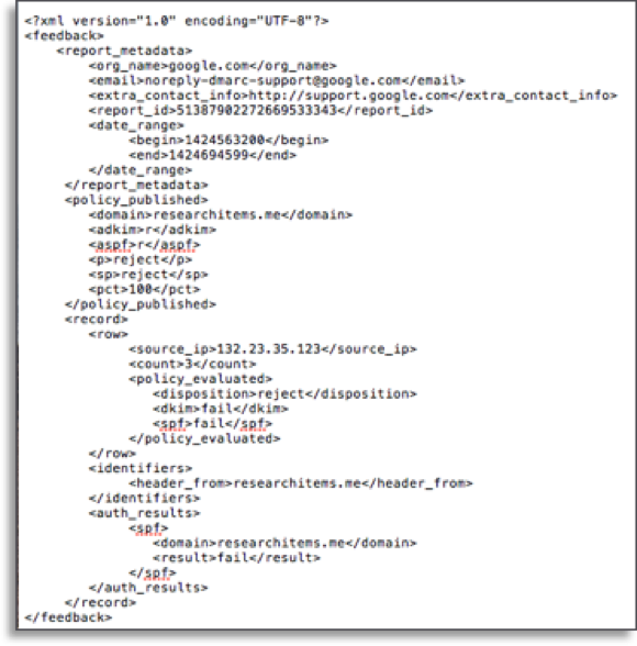 First, while the policy is set to reject messages that fail authentication, you have no ability to confirm that the policy is being enforced. Receiving hosts can choose to ignore the policy or enforce a different action, and this can leave your customers exposed to the threat. Worst yet, if you inadvertently replace “-all” with “~all”, messages failing authentication are now delivered without you being alerted.