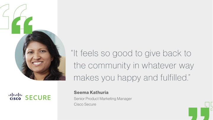 For others wanting to use Time2Give, Fan suggests finding opportunities you’re passionate about and utilizing light meeting days to volunteer. Kathuria says, “Take advantage of the 10 Time2Give days per year that Cisco gives us. It is very generous, and it feels so good to give back to the community in whatever way makes you happy and fulfilled.”