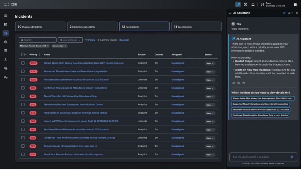 By leveraging comprehensive telemetry data from various sources in Cisco XDR and combining that with our AI Assistant, we enable SOC teams to rapidly respond to active incidents and fortify defenses against complex threats. The AI Assistant amplifies the SOC’s existing knowledge, streamlines routine tasks, and empowers analysts to focus on strategic initiatives. This boosts analyst productivity and job satisfaction, leading to improved staff retention and SOC effectiveness, ultimately resulting in precise, consistent, and accurate security outcomes.