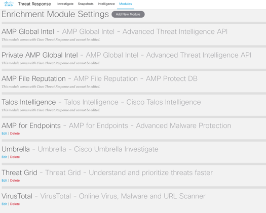 As of the time of publishing this blog, Cisco Threat Response brings together event logs and threat intelligence from multiple Cisco and 3rd party modules. It’s likely that by the time you read this blog, the platform has added additional modules and capabilities.