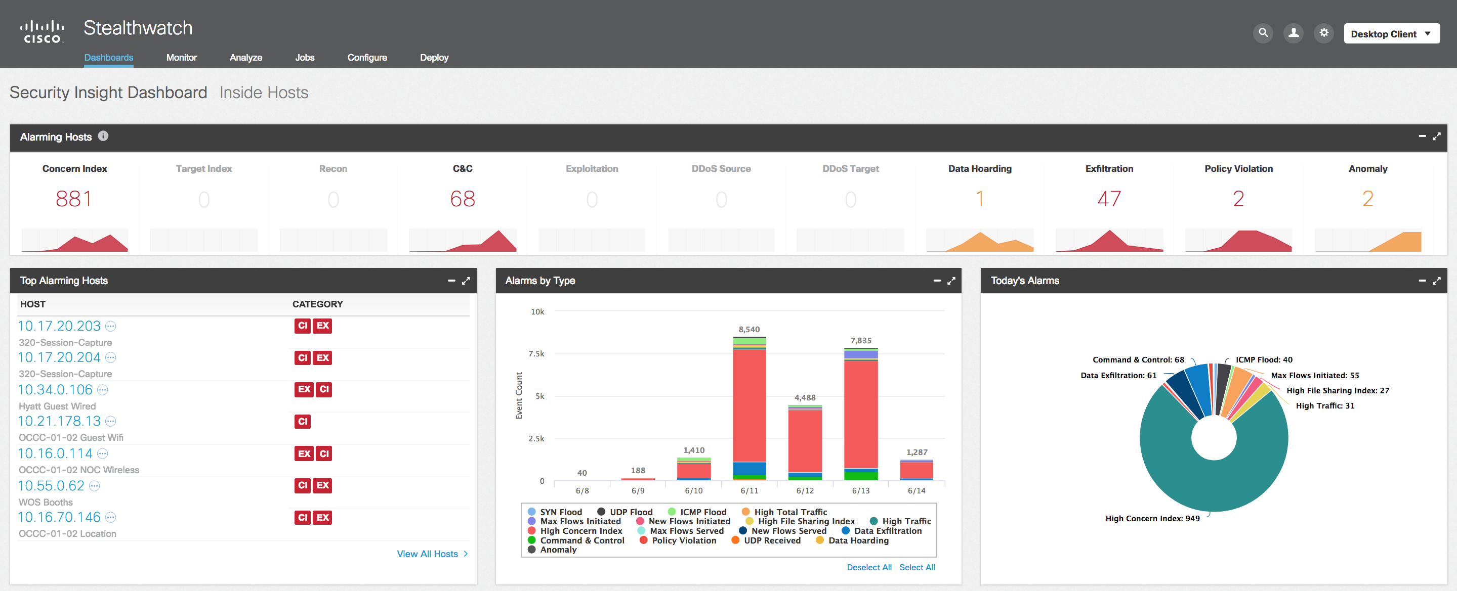 This is a massive public network. Cisco used numerous security products to see threats real-time, including Cisco Stealthwatch with Cisco Encrypted Traffic Analytics. Throughout the course of the event, Cisco identified a number of threats and vulnerable traffic.