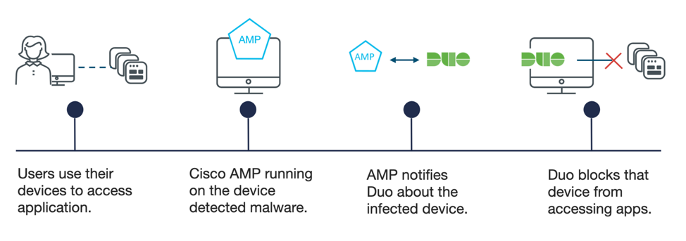 Duo and AMP provide organizations with comprehensive tools to prevent, detect and respond to potential threats from endpoint devices, helping to establish trust in those devices.