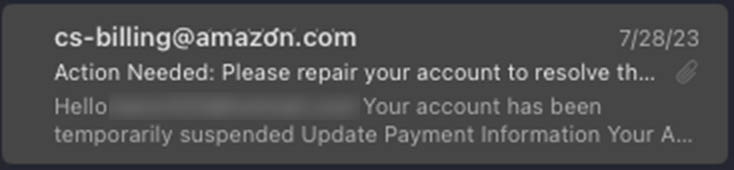 The email appeared to come from the Amazon billing department. When I was able to sit down and have a closer look, I realized that it was talking about Prime membership and not AWS. As anyone who manages AWS accounts will understand, this alleviated my largest concerns.