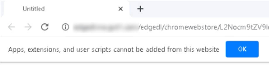 Finally, a domain is contacted that appears to download a Google Chrome extension. It’s hard to say what this extension is intended for, as Chrome blocks the execution of it by default.
