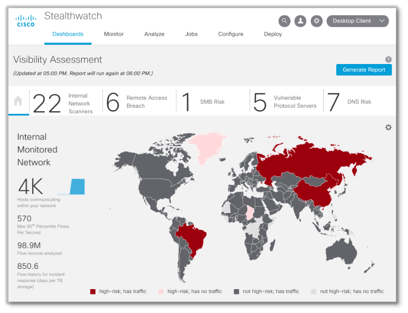 These are just some of the types of incidents that a network traffic analysis (NTA)/network detection and response (NDR) solution like Stealthwatch can detect. Stealthwatch collects telemetry from all parts of the network and provides enough contextual information along with the alert to easily investigate the traffic, and then take immediate action to respond to the threat. Our customers are always amazed at the things they were missing before deploying Stealthwatch to monitor their network. To gain confidence in your security effectiveness, sign up for our free 2-week visibility assessment today!