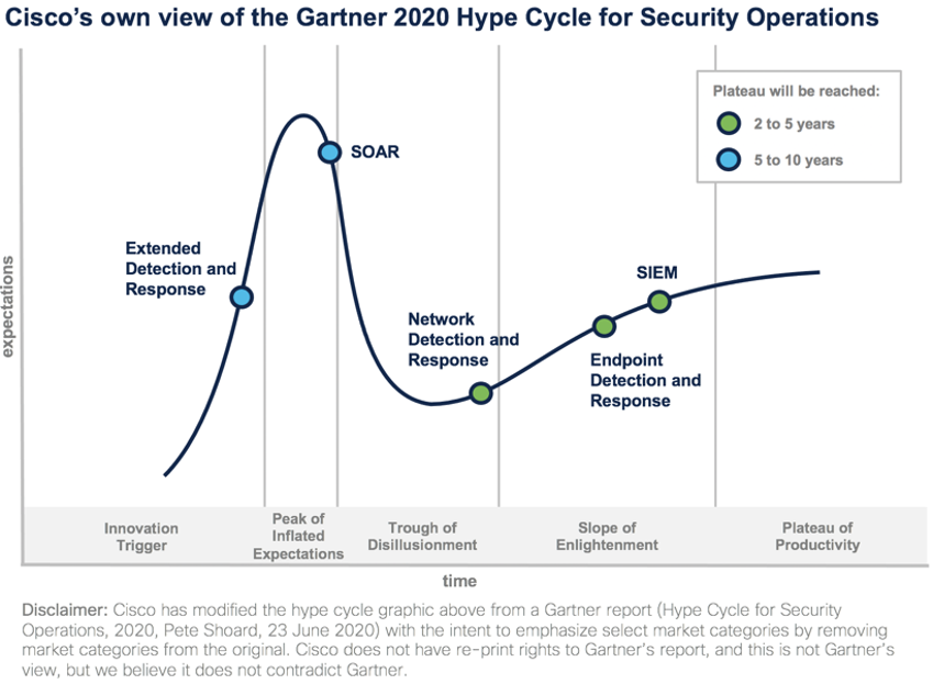 Per our view, Gartner devotes a significant portion of this research comparing and contrasting the new XDR idea to the mature SIEM (Security Information and Event Management) and newer SOAR (Security Orchestration, Automation and Response) ideas. Many SIEM sellers may be experiencing fear as Gartner acknowledges that “While the SIEM market is mature, many organizations have not deployed SIEM tools, have failed or incomplete implementations, or only use SIEM for log storage and compliance.” And many SOAR sellers may be frustrated by low adoption over the last several years; Gartner says “Newer SOAR tools are designed to provide integration across multiple components, but are hobbled with a lack of available APIs, data merging issues and a workflow that is disconnected from the detection activity that can efficiently launch response activities.” The innovation trigger that sets XDR apart from SIEM and SOAR is the level of integration of their products at deployment, which is why “XDR products will be appealing to more pragmatic organizations that are overwhelmed by security complexity and the lack of skilled security operations staff.” Yet our understanding when Gartner says that “XDRs are not a replacement for all SIEM use cases, such as generic log storage or compliance.” is that XDR will complement SIEM (and even SOAR) tools that customers have already invested in.