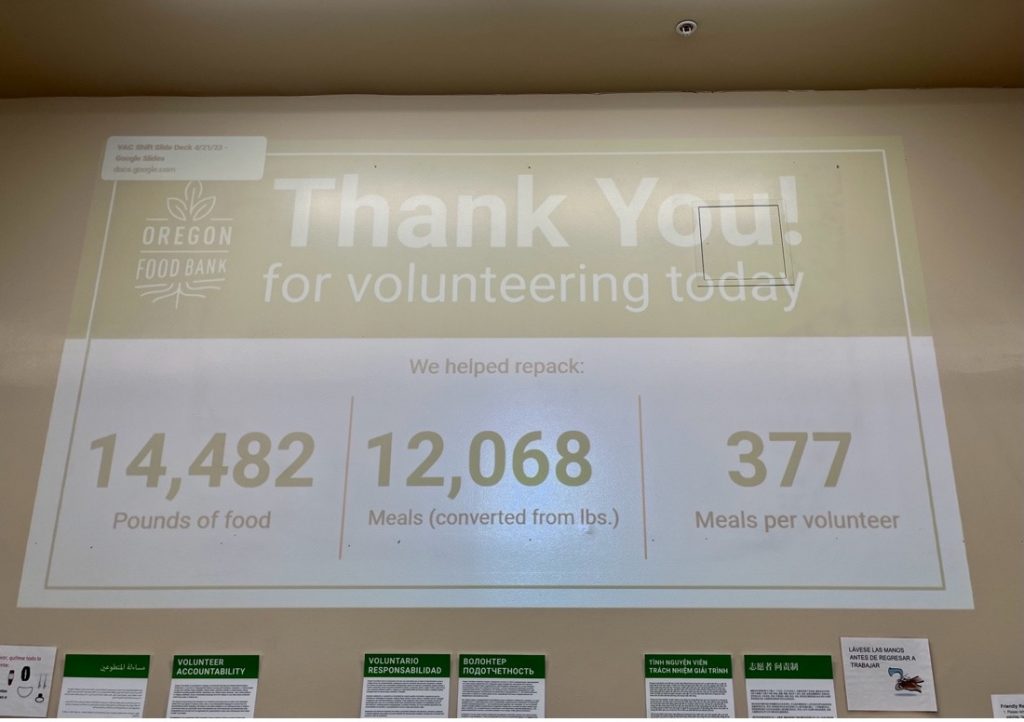 In Texas, Jaclyn Freeman, senior technical program manager, data science and engineering, led a team sorting food at the Central Texas Foodbank which serves 22 counties in Central Texas providing services for community members experiencing food insecurity.