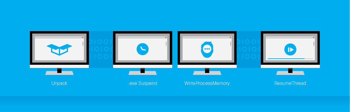 - Writes to that image with WriteProcessMemory