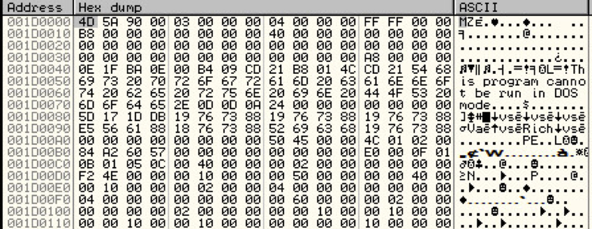 We can then dump this to disk for analysis of the next unpacking stage. The next routine makes use of the injection method used by Duqu to write its unpacked image3: