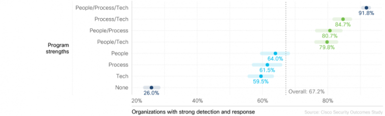 Nearly 92% of all the organizations polled in the study with strong people, process, and technology achieve advanced threat detection and response capabilities. That’s a 3.5X performance increase compared to SecOps programs unable to deliver on these three pillars.