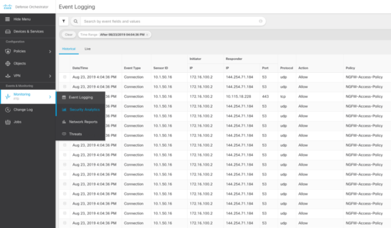 It certainly does. One of the primary use cases of storing NGFW logs is providing a historical and live view of said logs. NetSec operators love (?) sitting in front of these views and scrolling to troubleshoot based on connections that have occurred at a particular time with a particular IP address. With filters on search, Security Analytics and Logging fulfills this use case, providing real-time visibility of what is happening at your firewalls. What is more, this view is rendered within the CDO (Cisco Defense Orchestrator) user interface. Furthermore, since CDO is the curator of firewall tenants analyzed by Security Analytics and Logging, it is simpler to view logs in the portal that is used to manage those very devices.