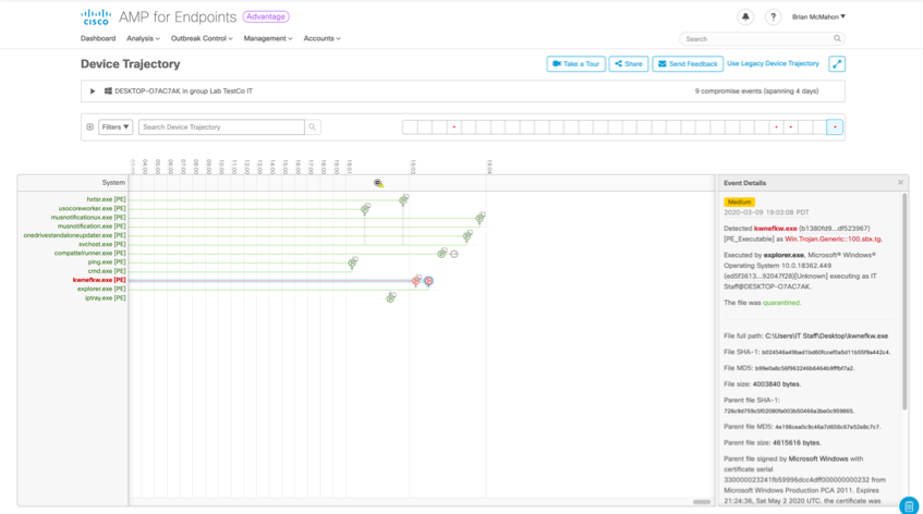 Sam now knows which systems inside our network have seen the malicious file. This information is provided by AMP for Endpoint, our cloud-delivered endpoint protection, detection and response solution, that helps you simplify this investigations with a broader context from endpoint, web, email, and network data.