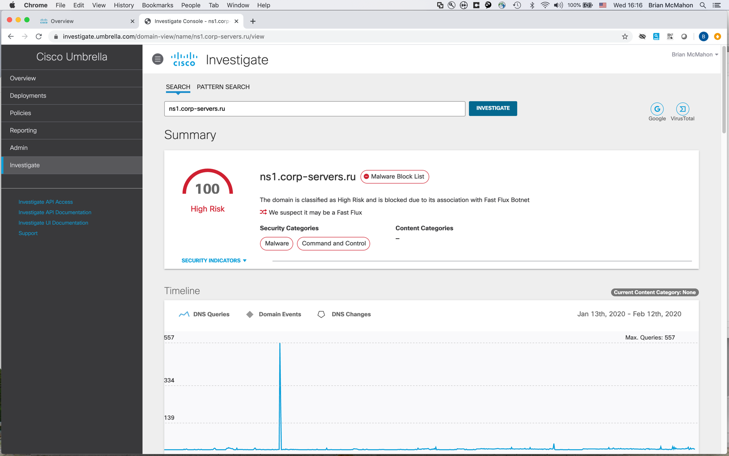 Imagine a security analyst whose enterprise has invested in network traffic analysis. Let’s call him Sam. He works for large financial services organization with over 10,000 employees and more than 80,000 user accounts. It’s 6:00 PM on a Friday evening and Sam is getting ready to catch the latest Zombie apocalypse movie with his buddies. A notification pops up on his Cisco Umbrella console telling him that Umbrella has blocked malware from communicating with a C&C channel.