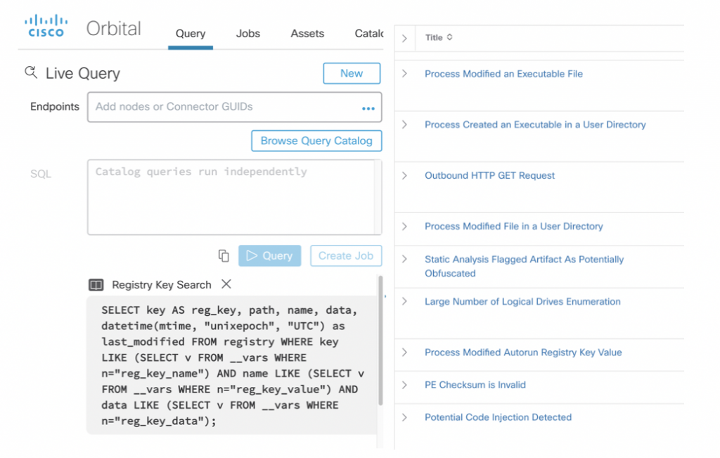 For all the Sam’s of the world, this analysis can be at your fingertips too. With Threat Grid, you can easily construct a query using the Orbital Advanced Search feature, a new advanced capability in Cisco AMP for Endpoints based on the behavior observed when the sample executed. This feature accelerates your hunt for threats and enables you to shrink the lifecycle of an incident– mitigating any or further damaging cost of the breach to your business.
