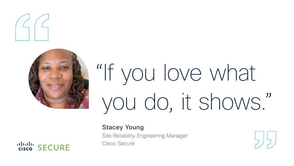 “If you’re in a tech field —whether it be cybersecurity, SRE, software development — if you love what you do, it shows. Most of the people here that I’ve encountered love what they do, and it comes through in an interview,” she said.