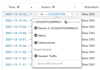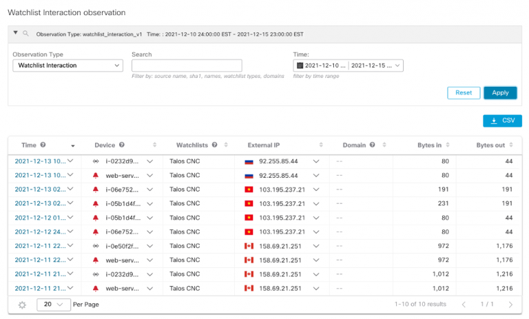 Review Watchlist Observations to ensure any traffic to the Talos IP’s is being investigated in Secure Cloud Analytics
