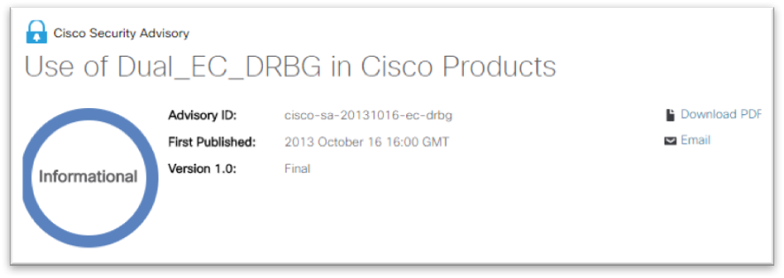 The Informational rating gives PSIRT the flexibility to provide important security information that may not fit into the traditional Critical, High, Medium, and Low range of SIR values for our security advisories. In advisories that have an Informational SIR, we’ll cover topics such as: