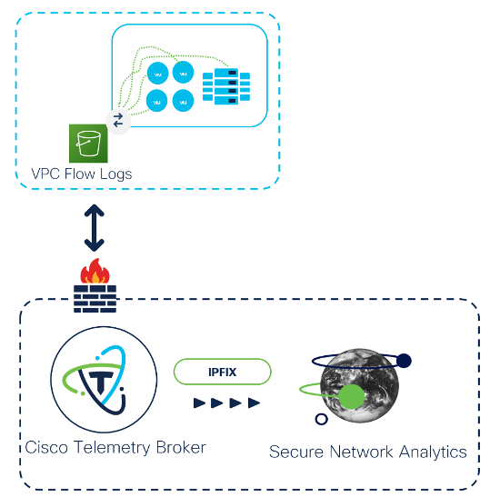 The Cisco Telemetry Broker (CTB) further expands Secure Network Analytics’ data collection capabilities by ingesting network telemetry from various sources, transforming the data format into IPFIX records, and then forwarding that telemetry to Secure Network Analytics. For example, CTB can ingest on-premises network telemetry, including NetFlow, Syslog, IPFIX, and cloud-based telemetry sources, such as AWS VPC Flow Logs, and transform them into IPFIX records or other Secure Network Analytics-compatible telemetry sources.