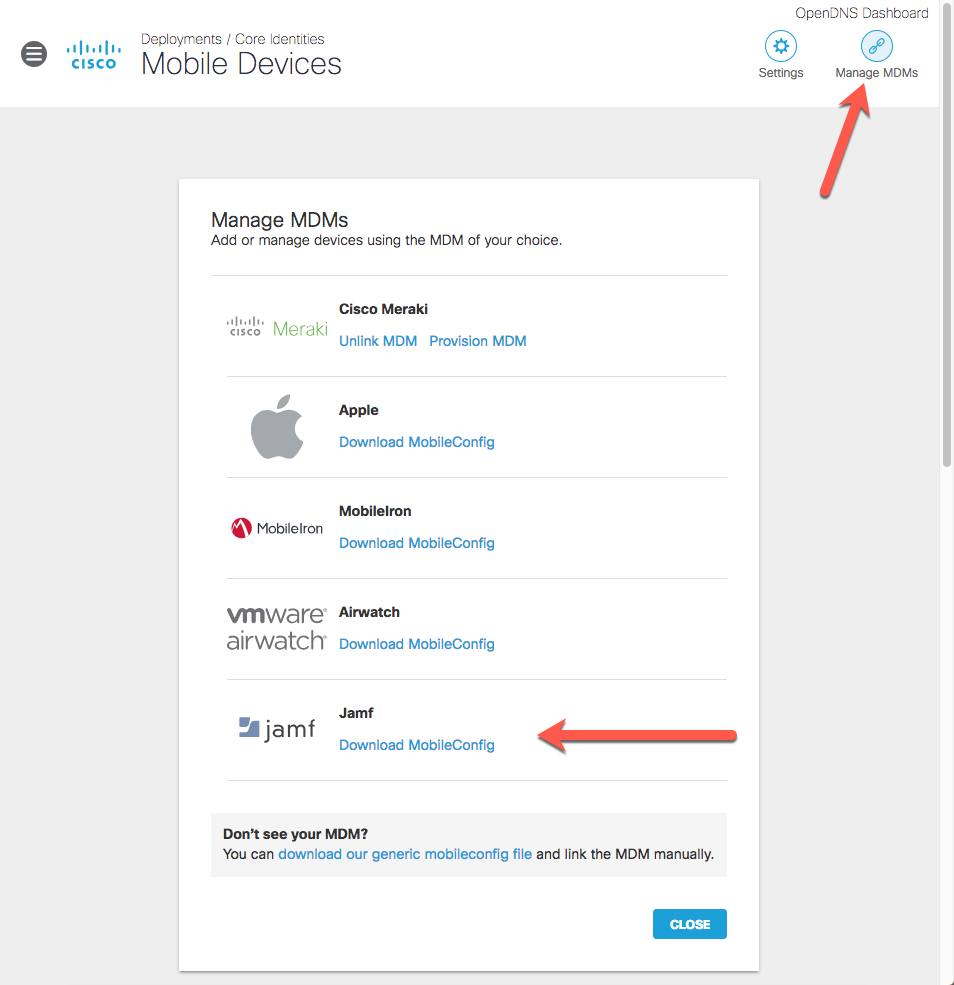 Figure 2 – Downloading the Jamf Configuration from Umbrella Dashboard