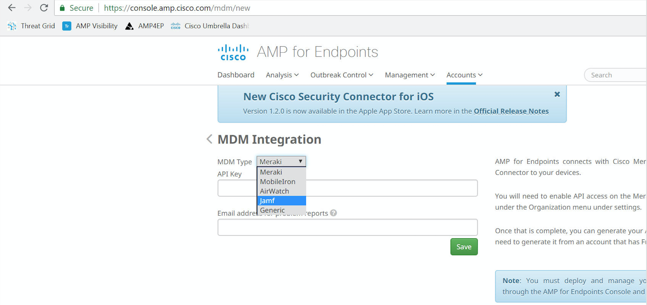 Cisco Security Connector is now integrated with Jamf Pro (formerly known as the Casper Suite). Designed to automate device management for the administrative team, while driving end-user productivity and creativity, Jamf Pro is a leading Enterprise Mobility Management (EMM) tool focused on delivering on the promise of unified endpoint management for Apple devices.