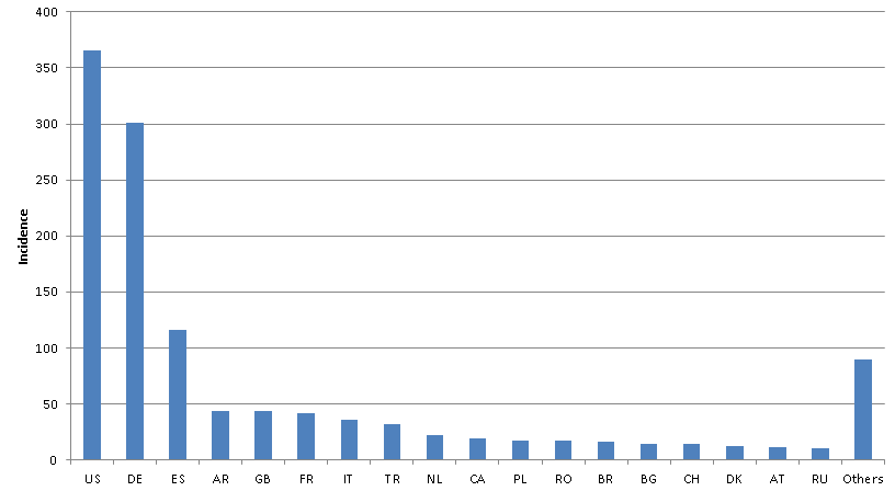 The servers affected by the attack are distributed throughout the world, with a particularly high incidence in Germany and USA.