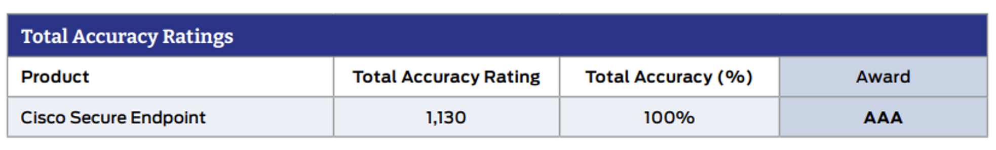 The results were nothing short of stellar as Cisco Secure Endpoint received the highest rating possible, a AAA rating from SE Labs for Enterprise Advanced Security EDR Detection.