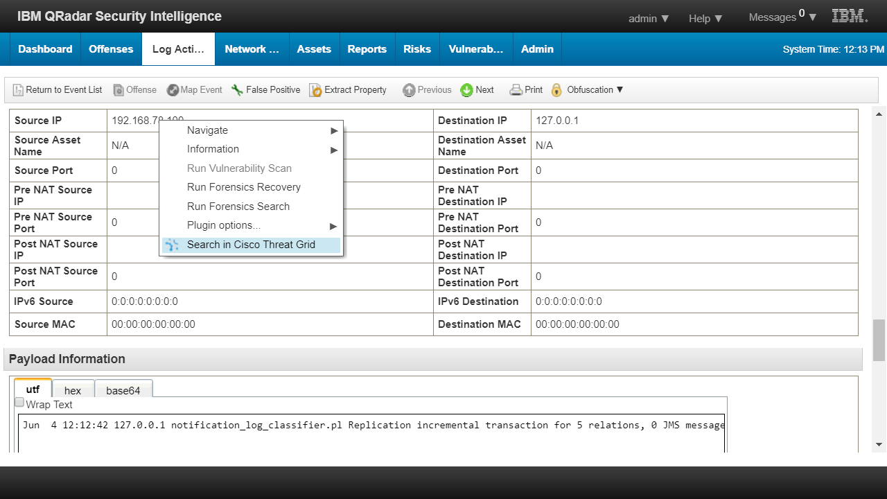Also, under Log Activity, for suspicious IP addresses, you can use the right-click to see instant contextual threat intelligence from Threat Grid.