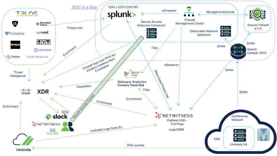 A new addition to our SOC this year was Cisco Secure Access. By deploying the resource connector in our ESXi, the on-premises gear is accessible from anywhere provided proper authentication has taken place. Our custom “SOC in a Box” was one of the highlights of the SOC tours and generated quite a bit of excitement around Cisco Security!