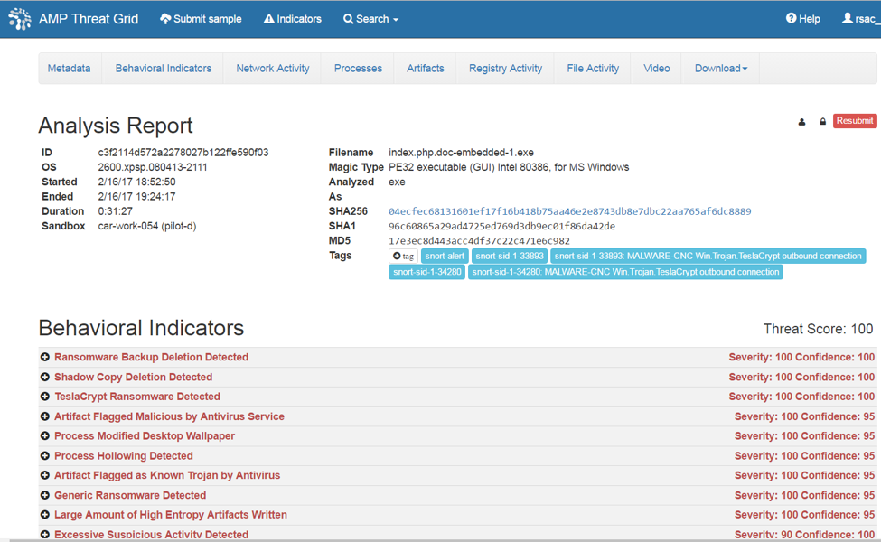Effective Security requires three essential pillars: Simple to use, Open architecture and Automated workflows. The collaboration with RSA NetWitness Packets and Cisco AMP Threat Grid, in the RSA Conference 2017 Security Operations Center, exemplified the power of a four year partnership that provides an effective solution for network forensics and malware analysis.